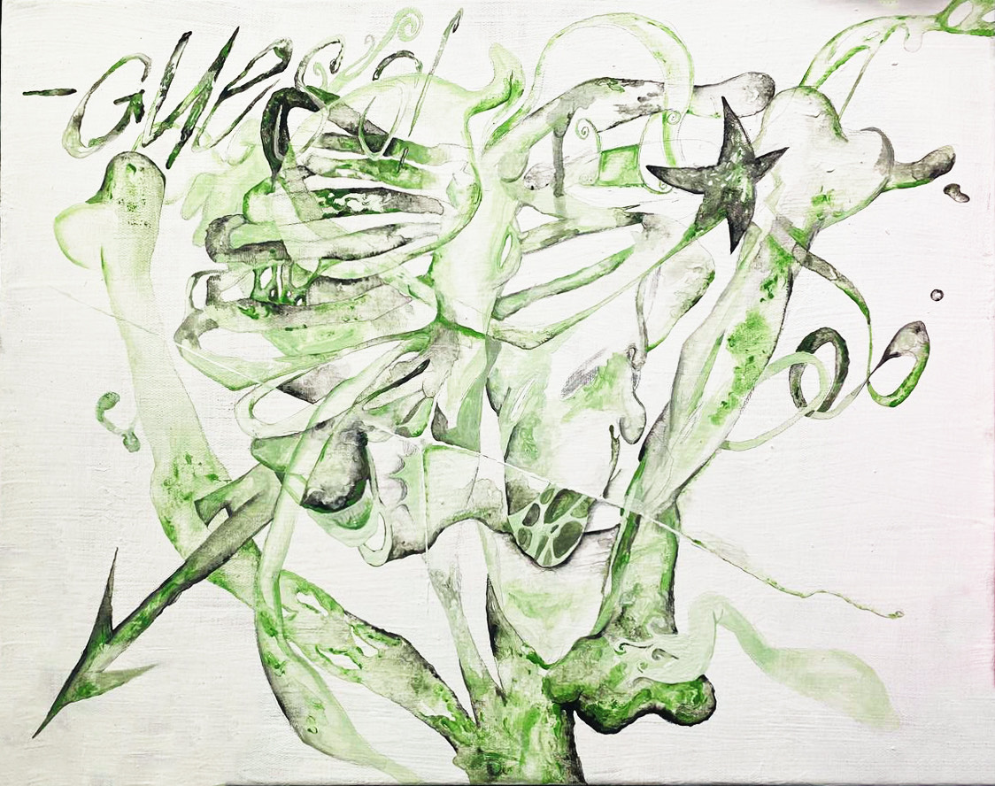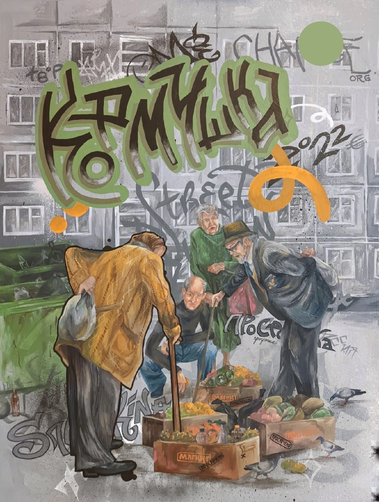 Холст, акрил, масло, аэрозоль, аппликация.