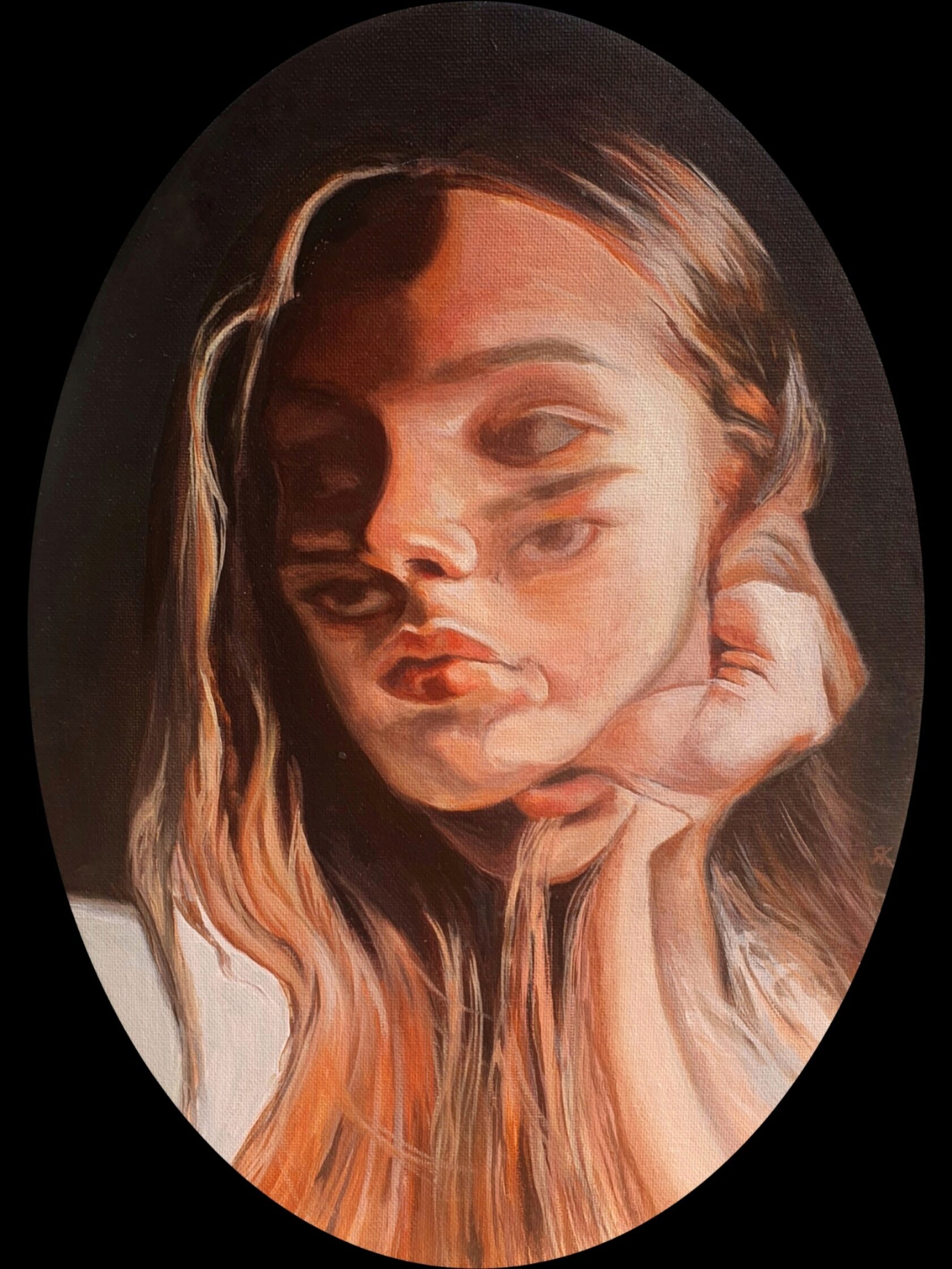 Овальный холст на картоне, масло.