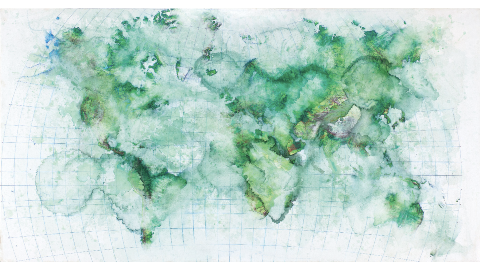 Так в серии полотен «Не мочить», алфавит, цифры, карты мира размываются от капель воды, теряют очертания, становятся абстракцией, демонстрируя хрупкость любого порядка, любой строгой и разумной системы под воздействием стихии и случая. Медицинский совет «не мочить» обнуляется веселой забавой, детской кляксой, пробуждающей воображение даже в суровые времена трансформации политических карт, за которыми не успеваешь следить.