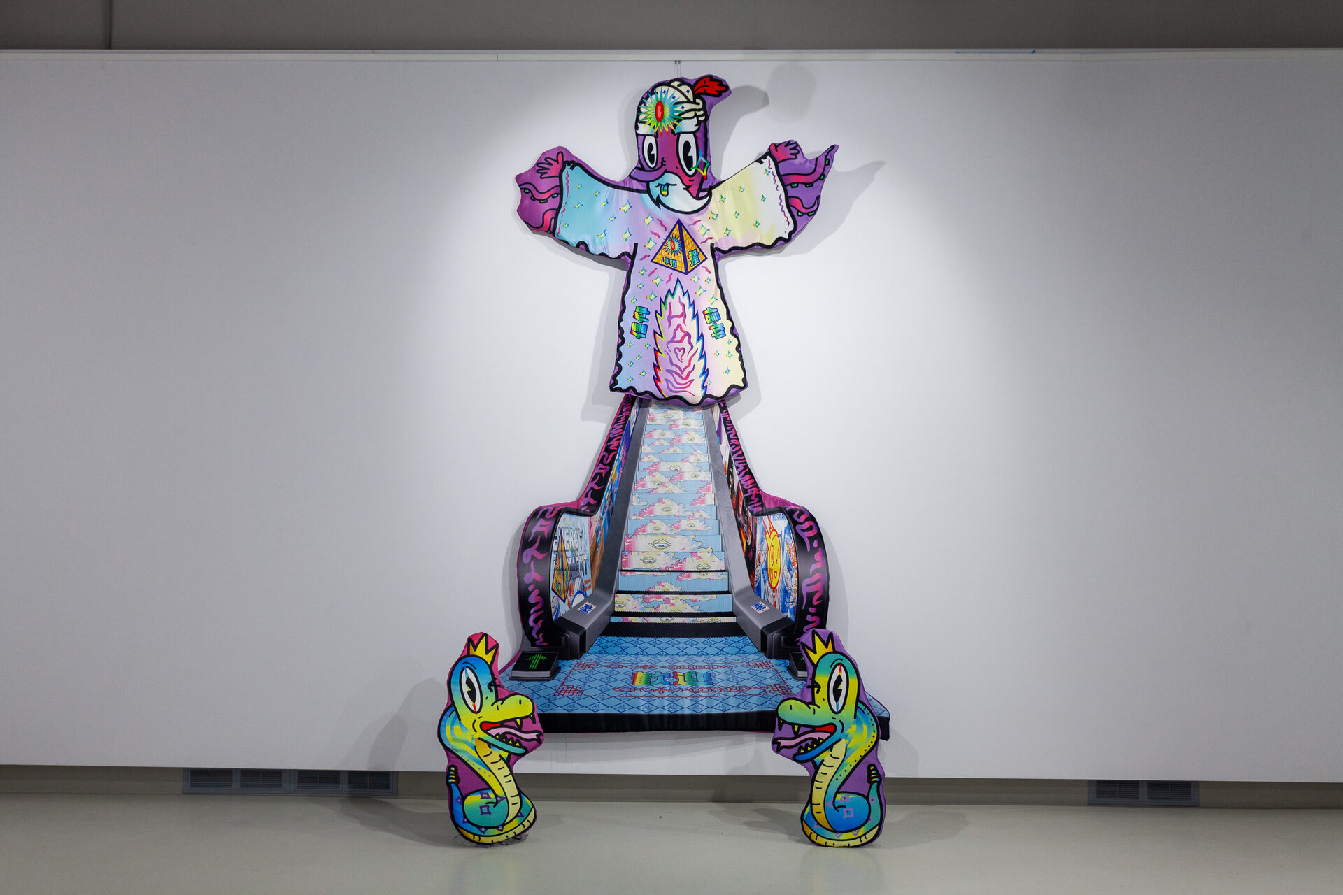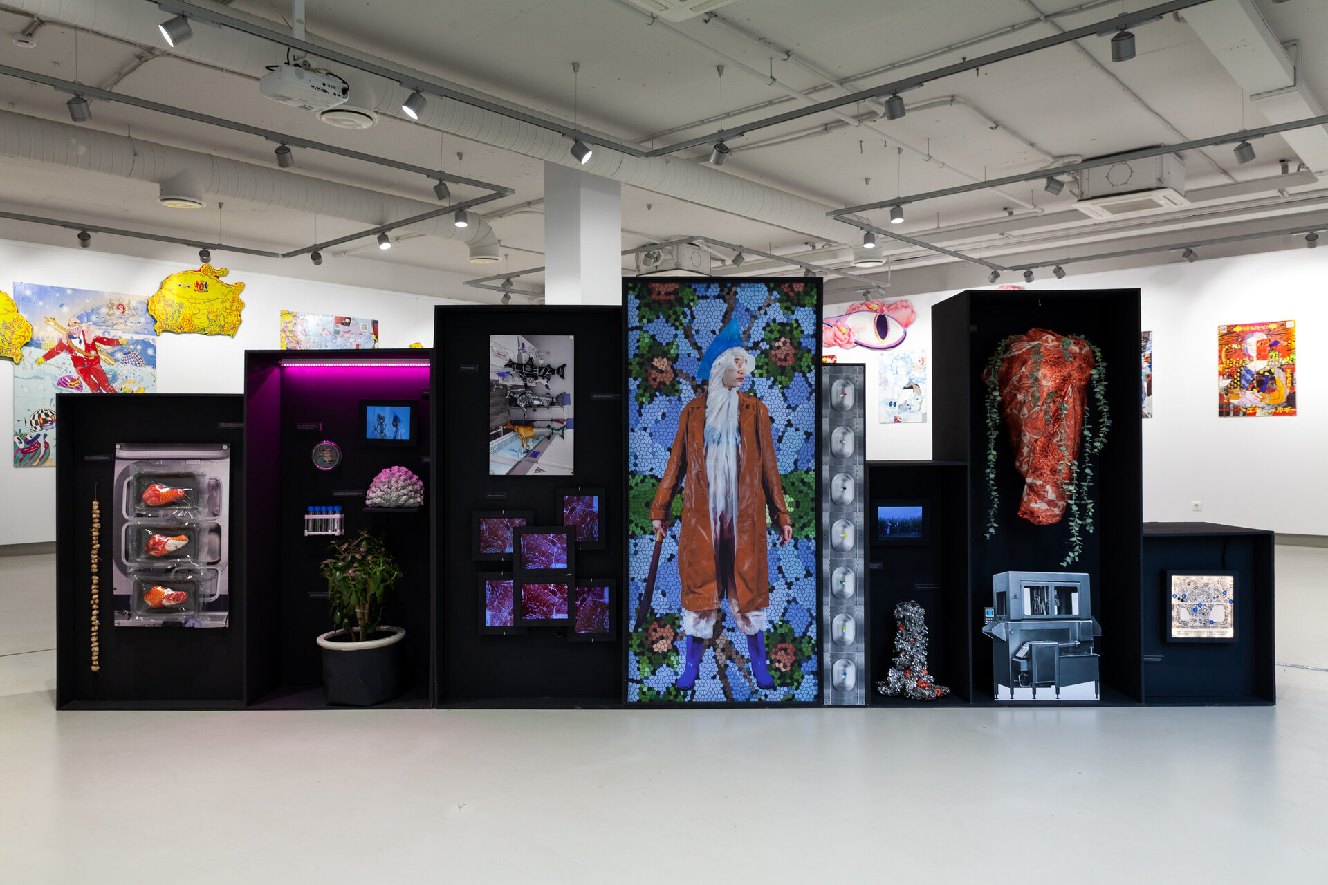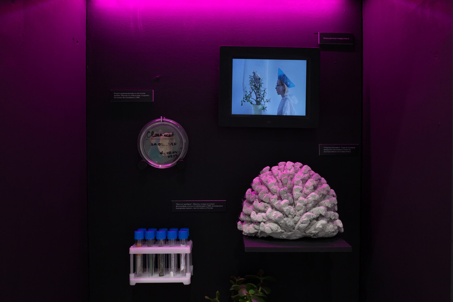 Помимо яркой, цифровой эстетики, авторов объединяет утопический горизонт их художественных проектов. Моделируя спекулятивный сценарий будущего, в котором человечество перестанет убивать животных и начнет выращивать неживое мясо из их ДНК, Людмила Калиниченко задается вопросом о новом определении «человеческого». Представляя апокалиптические картины будущего сверхпотребления, вобравшего в себя милитаризм и поп-культуру, Михаил Горелов предлагает нам с головой окунуться в этот опасный и яркий аттракцион.