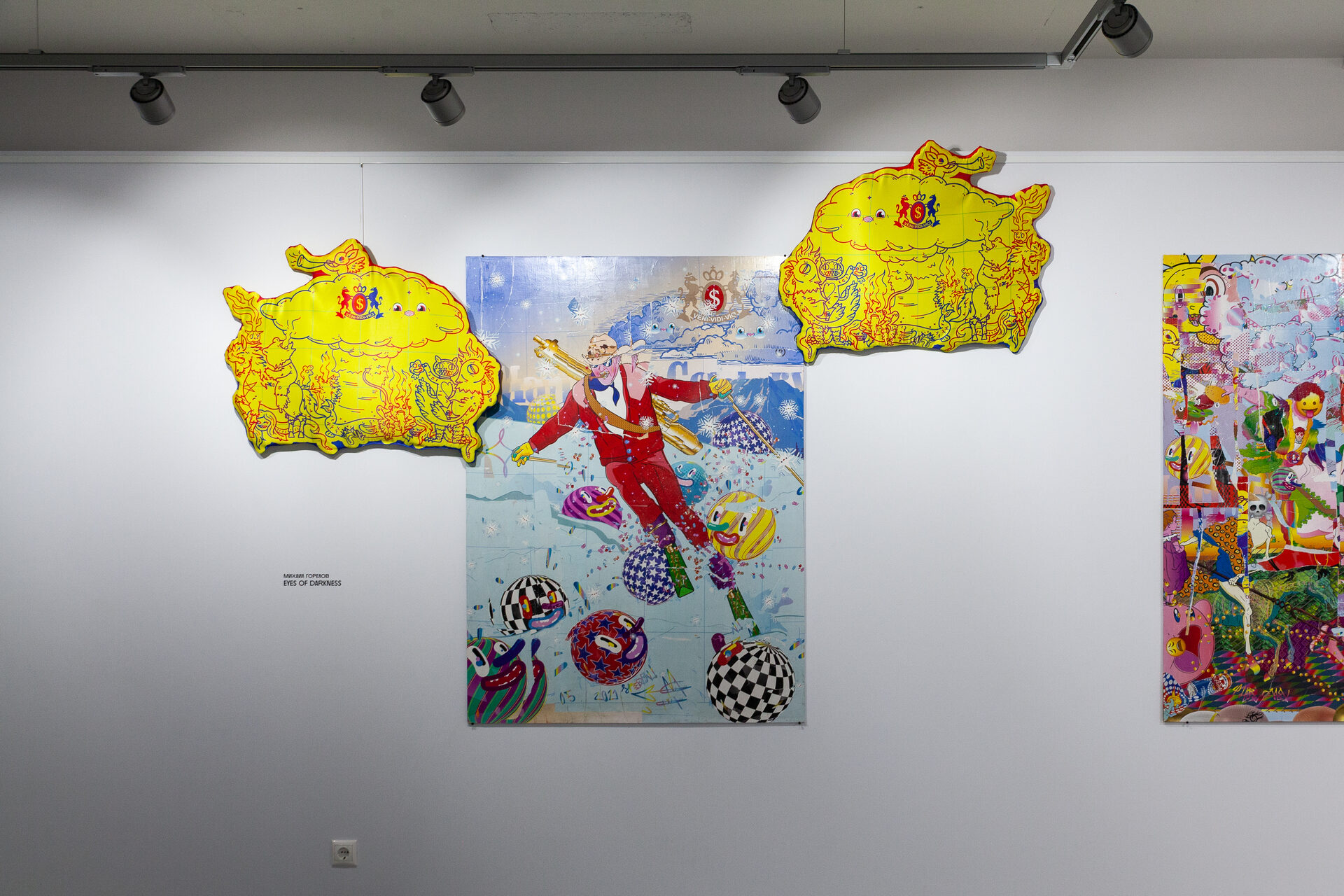 Выставка представляет из себя встречу в одном пространстве двух персональных проектов, «Срок годности: неограничен» Людмилы Калиниченко и «Eyes of darkness» Михаила Горелова.
