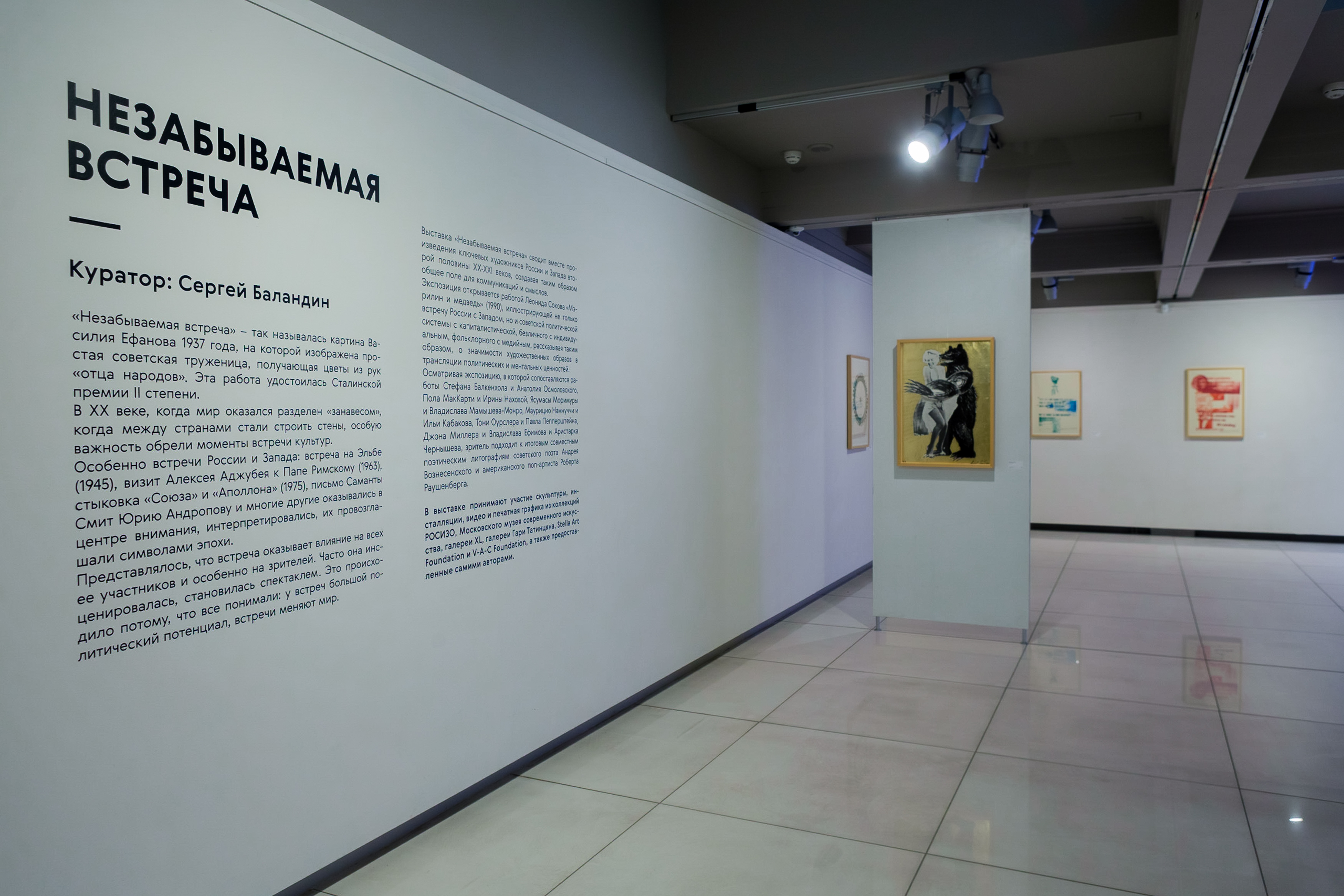 Вас ждут произведения звёзд российского и зарубежного искусства из лучших государственных и частных коллекций современного искусства Москвы. Эффектные и будоражущие, проникновенные и интеллектуальные. От современной скульптуры Стефана Балкенхола, до московского концептулизма Ильи Кабакова. А также работы Роберта Раушенберга, Павла Пепперштейна, Ясумасы Моримура, Пола МакКарти и других известных художников.