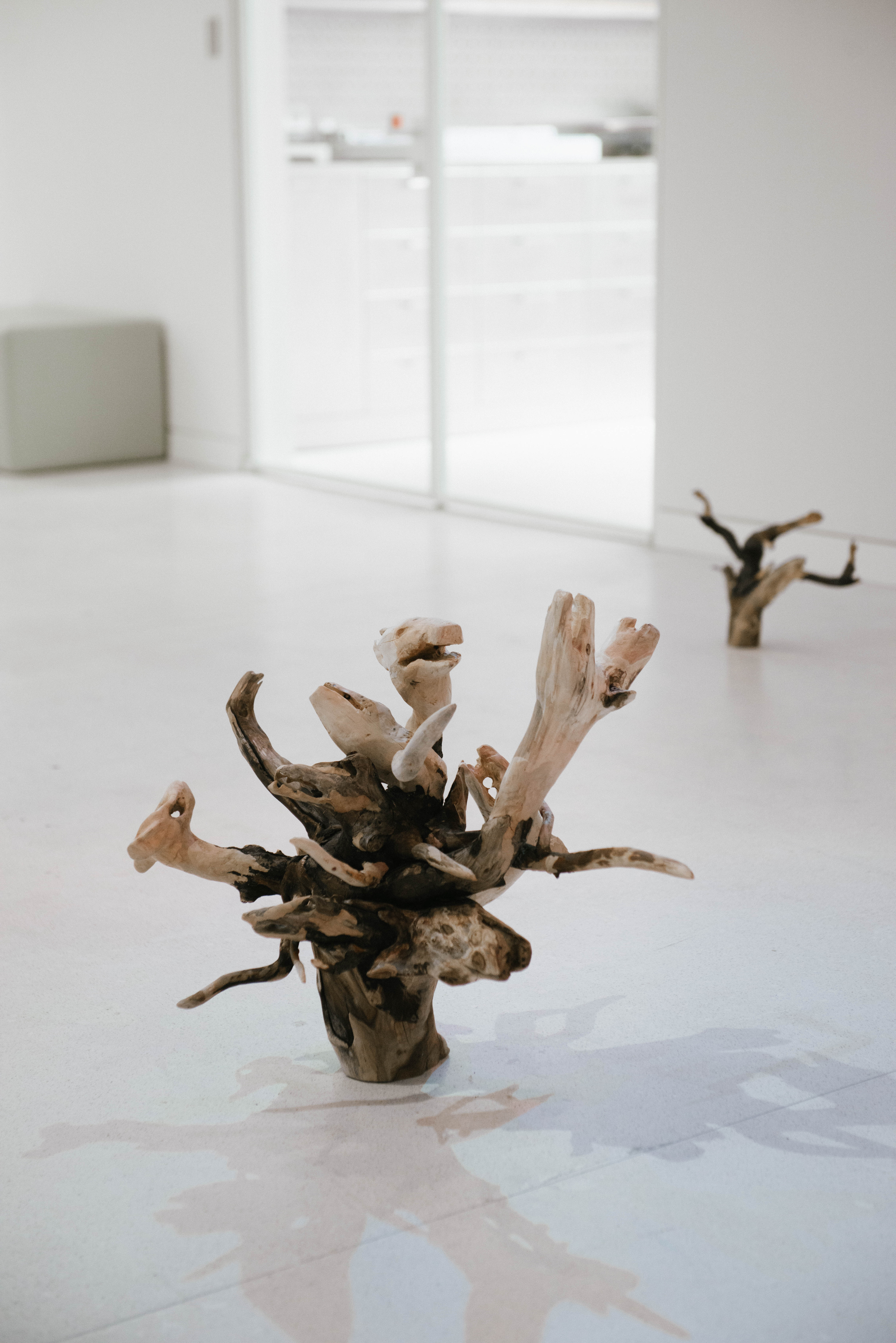 Тотальная инсталляция «Хора» Анны Комаровой — первый акт трансдисциплинарного выставочного цикла «Заговор тополей», спекулятивного расследования тайны трех срубленных деревьев напротив старого входа в галерею.