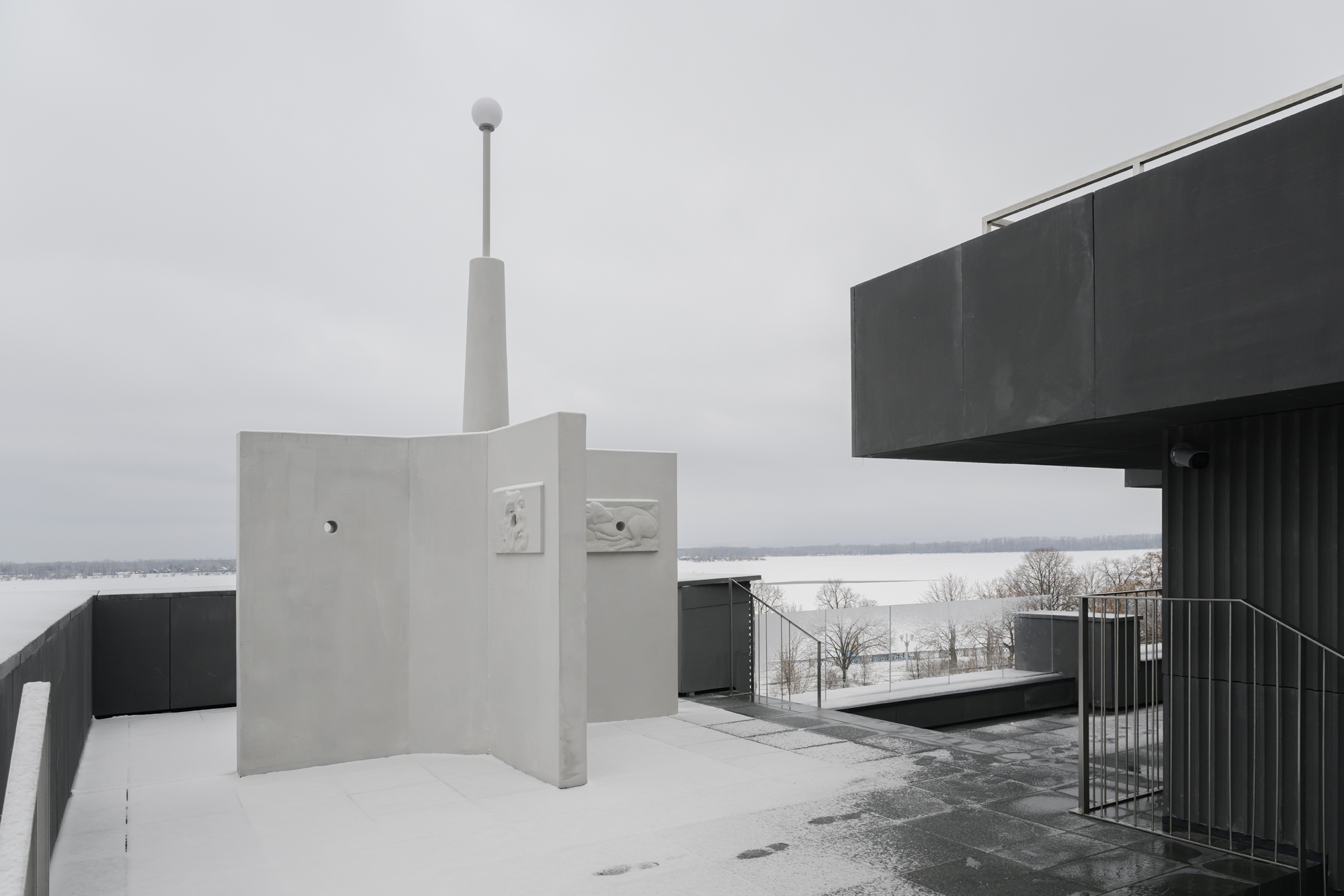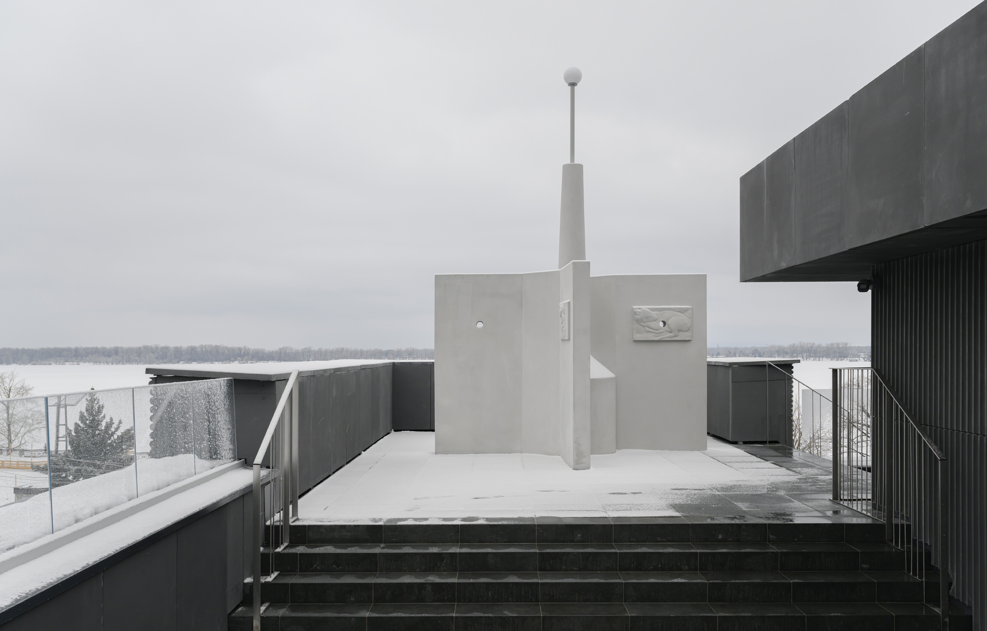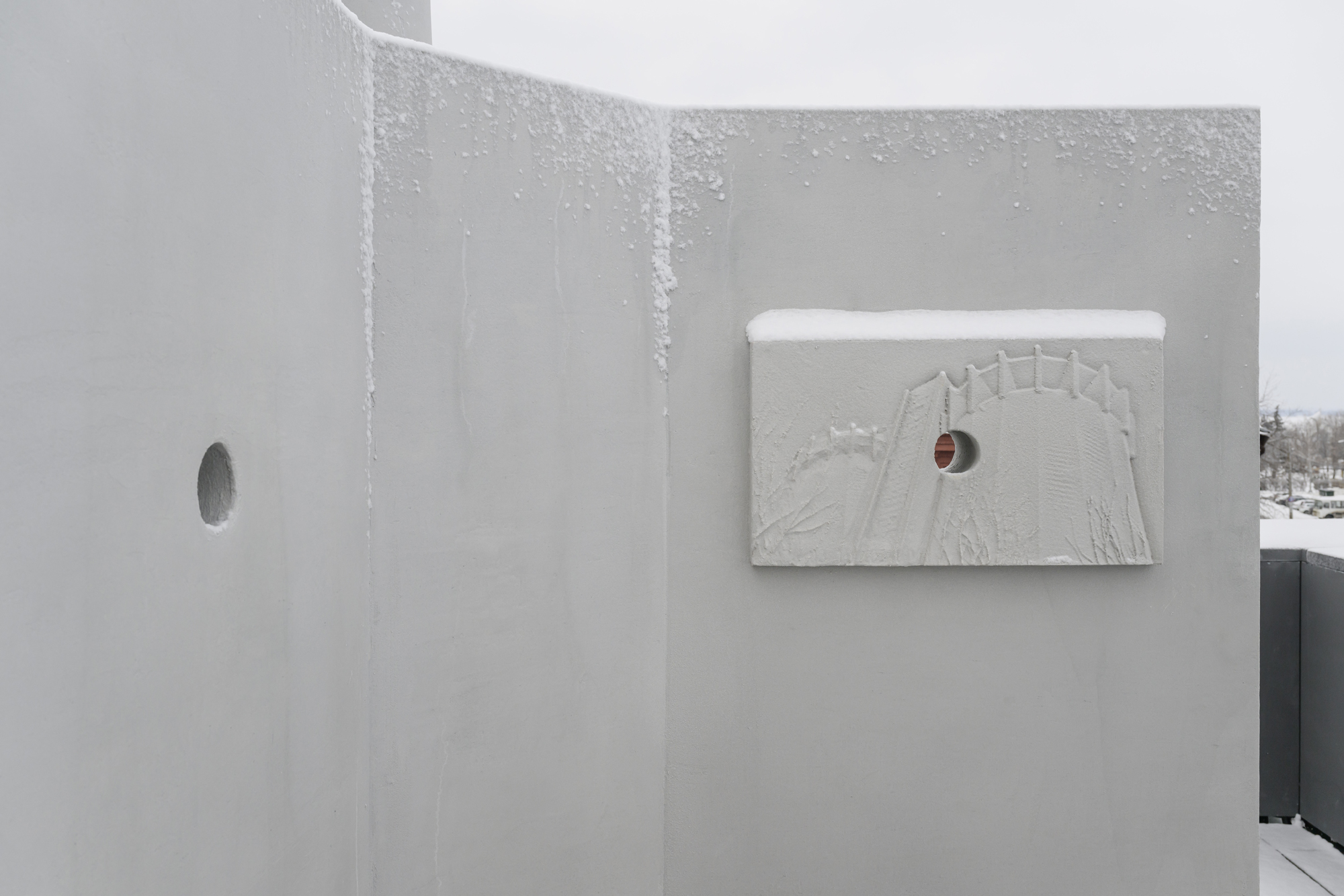 «Крылья» объекта дополнены барельефами, сюжеты которых отсылают к сентиментальным моментам пребывания Игоря Самолета в Самаре в марте 2025 года. Так он одушевляет строгую архитектурную форму и связывает себя с городом, делая историю «Солнышка» более личной.